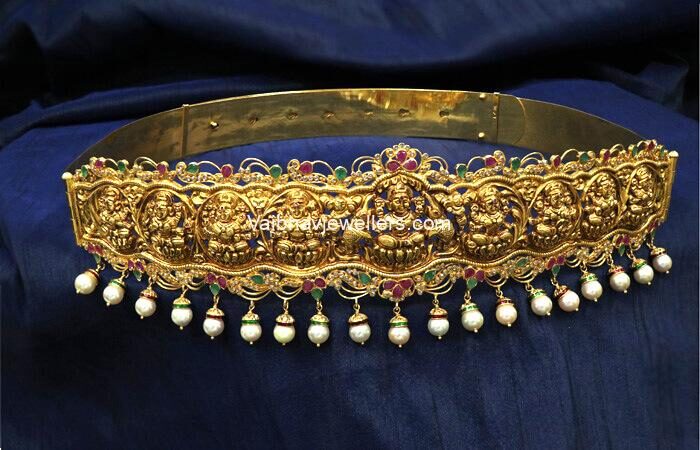 22Kt Designer Lakshmi Peacock Antique Nakshi Jada With Geru Polish