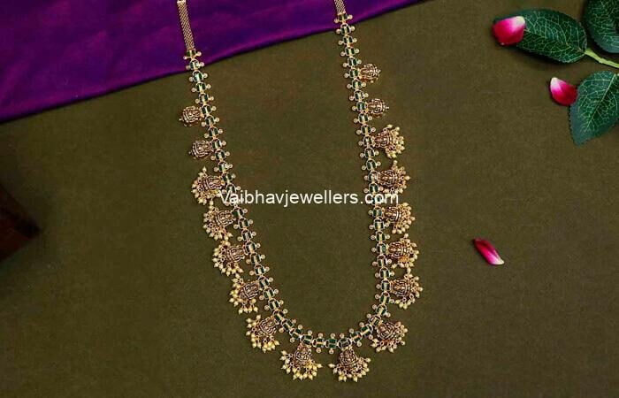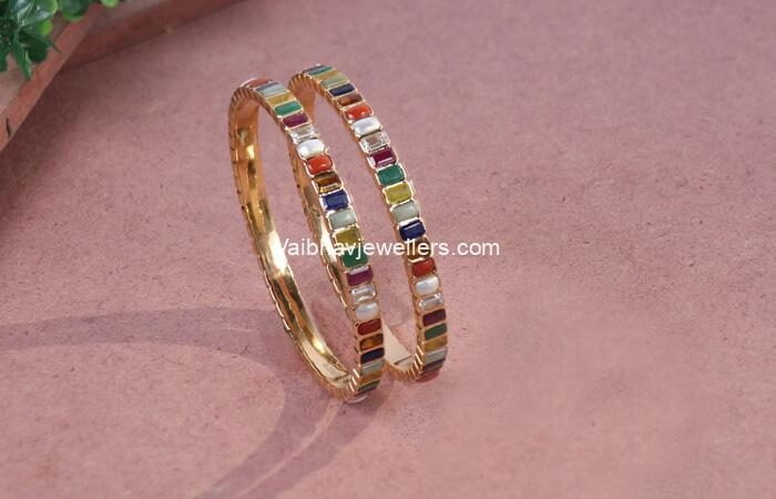 This unique 22Kt gold pachi polki bracelet from Vaibhav Jewellers showcases exceptional craftsmanship. Featuring intricate pachi and polki work, it adds a touch of elegance and sophistication to any outfit. Perfect for formal events or special occasions, this bracelet is designed to enhance the wearer's beauty while celebrating the rich heritage of Indian jewellery.