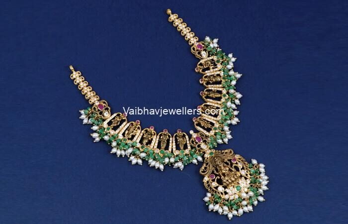 22Kt Gold Precious Pachi Guttapusala Lakshmi Necklace