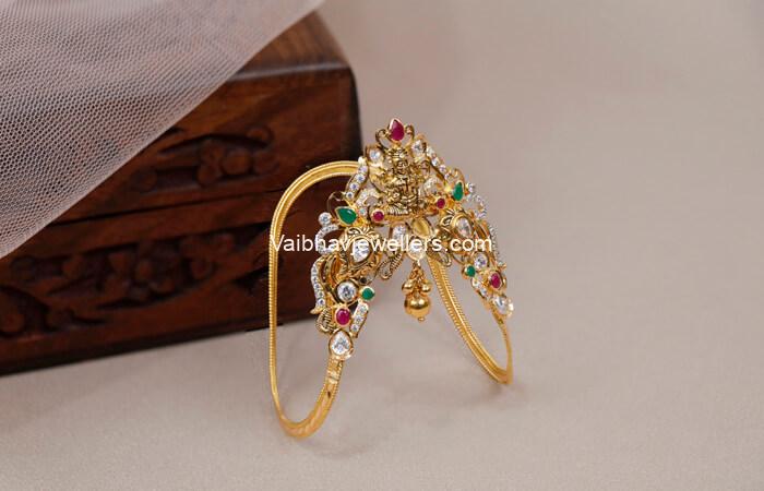- Temple Jewelry Vanki: Steeped in divine allure, the temple jewelry vanki pays homage to the exquisite craftsmanship of ancient temples. Embellished with intricate motifs of gods and goddesses, this design captures the spiritual essence of South India. Crafted with meticulous attention to detail, it epitomizes devotion and spirituality, carrying the blessings of the divine with every adornment.