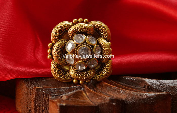 Antique finish gold bands exude a vintage charm that appeals to many couples. These Indian-style wedding bands in gold have a weathered or aged appearance, achieved through specific surface treatments and oxidation techniques. The antique finish gives the band a distinct character and a sense of nostalgia, making it stand out in its elegance.