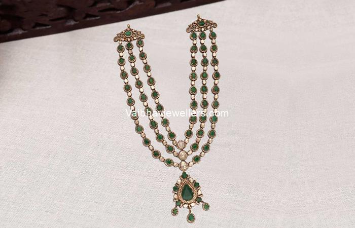 18Kt Pear Shaped Polki Emerald Haram In Victorian Style