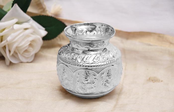 At Vaibhav Jewellers, you will get a variety of Indian silver glass tumblers for every need and requirement. From intricate Ashta Lakshmi embossed designs to silver tumbler mugs or matt finish south Indian silver glass tumblers, the range is simply attractive and unlimited. You can browse through these designs varying in size, and weight on the website. You can gift these to newborns, as a wedding or Diwali gift, or housewarming gift, and even apt for personal use.
